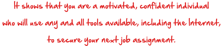 You could also fax over a copy of your resume to any contractor’s office, or a cover letter inviting them to view your resume online. I can’t tell you how many times I got hired over the phone this way! Your online job resume is always updated and readily available to the contractor so they don’t have an outdated one sitting in their file cabinet.