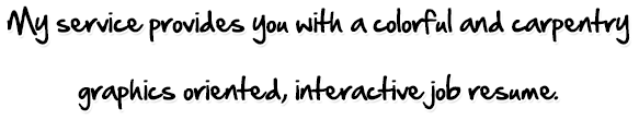 ..some of the things I have learned in my spare time and over the last twenty some years, are how to build web pages and web sites, and I have become quite accomplished at it. I have taken that knowledge and posted my job resume in a colorful, interactive web page on the Internet and I have used it as a tool in soliciting myself to area contractors when looking for work. I have been using this technique for over 20 years, practically the entirety of my career in the carpenters union and it has worked very well for me many times and I would like to share with you the reasons why.